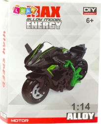 Stylový model motocyklu k vlastnímu sestavení v měřítku 1:14 potěší malé konstruktéry i fanoušky strojů. Z kvalitních kovových a plastových dílů vznikne realistický, sportovní model v atraktivní zeleno‑červené kombinaci. Skládání rozvíjí jemnou motoriku, logické myšlení a koncentraci a přináší radost z vlastnoručně vytvořeného výsledku.