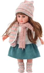 Roztomilá panenka SWEET ANGEL o výšce 36 cm potěší každé dítě, které miluje hru na rodinu a pečování. Má dlouhé hnědé vlasy, jemné rysy obličeje a realistické oči. Obléknutá je do zimní sady – čepice, šály a svetříku, doplněných sukní, halenkou a ponožkami. Skvělá pro rozvoj fantazie a hraní rolí.