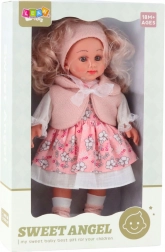 Roztomilá panenka SWEET ANGEL o výšce 36 cm okouzlí jemnými rysy, dlouhými blond vlásky a elegantním outfitem. Má růžové květinové šaty s bílým límečkem, růžovou vestu bez rukávů, ladící čelenku a ponožky. Skvělá pro hru na role, rozvoj kreativity a péče.