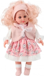 Panenka SWEET ANGEL je navržena s důrazem na detail – jemná tvářička, růžové rty a výrazné oči jí dodávají přirozený půvab. Stylová růžová sukýnka s květinovým vzorem a bílým límečkem působí elegantně, růžový bezrękawnik (vesta bez rukávů) a čelenka krásně ladí do jednoho celku.