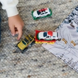 Součástí je 8 kovových autíček dlouhých 7,5 cm, z toho 5 exkluzivních modelů, které jen tak jinde nenajdete. Doplňků je celkem 16, takže si děti snadno vytvoří vlastní scénáře – od městských ulic až po závodní tratě.