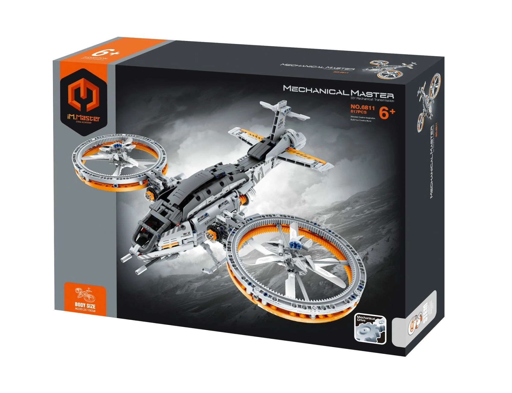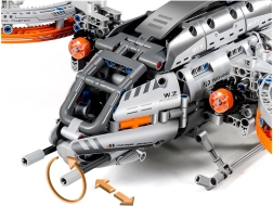 Tato propracovaná stavebnice s 850 dílky přináší futuristickou vesmírnou loď/letoun s kruhovými rotory a funkčním mechanickým pohonem. Díky viditelným převodům a ovládacím prvkům si užijete realistický pohyb rotorů a promyšlenou konstrukci, která rozvíjí zručnost, logické myšlení i trpělivost.