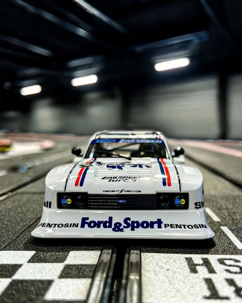 Ikonický závodní vůz Ford Capri Zakspeed v provedení pro autodráhy Carrera Digital 124 přináší realistický vzhled, detailní zpracování a spolehlivou jízdní dynamiku. Díky funkčním světlům, silnému magnetu a kvalitním kontaktním kartáčkům zvládne rychlé průjezdy i dlouhé stinty bez výpadků výkonu.