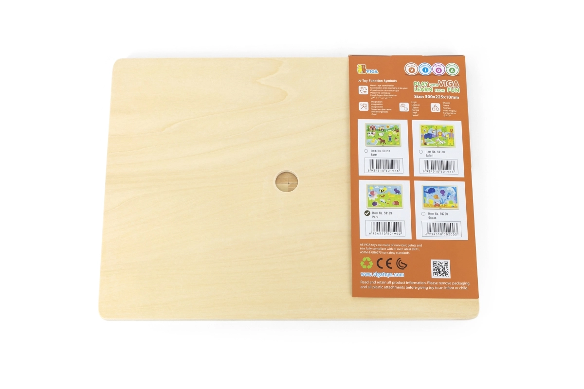 Dřevěná konstrukce a hladce broušené okraje zajišťují dlouhou životnost a bezpečné hraní. Ideální jako první „větší“ puzzle pro malé skládače – doma i ve školce.