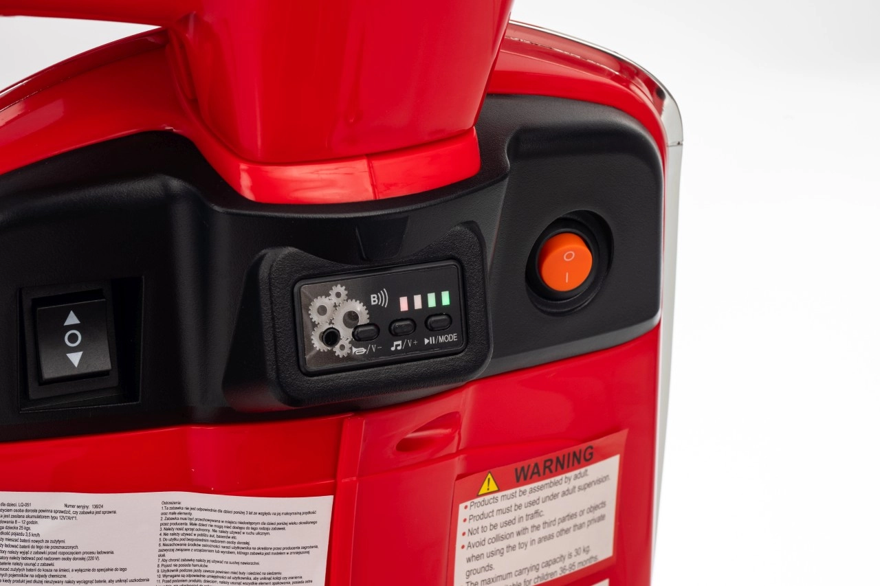 Malí jezdci si užijí zábavu s integrovaným audio panelem – přehrávejte oblíbené písničky přes Bluetooth, MP3 či AUX. Na řídítkách nechybí zvuková tlačítka a klakson, sedlo z ekokůže zajistí pohodlí i při delší jízdě. Indikátor nabití baterie vás navíc udrží v obraze, kdy je čas dobít.