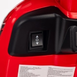 Stylový dětský elektrický skútr ve stylu VESPA potěší malé jezdce realistickým vzhledem, pohodlným sedlem z ekokůže a stabilní jízdou díky pomocným kolečkům. Nabízí 2×35 W motor, baterii 12 V 7 Ah, LED osvětlení vpředu i vzadu a bohaté audio funkce (MP3, Bluetooth, AUX) s indikátorem stavu baterie.