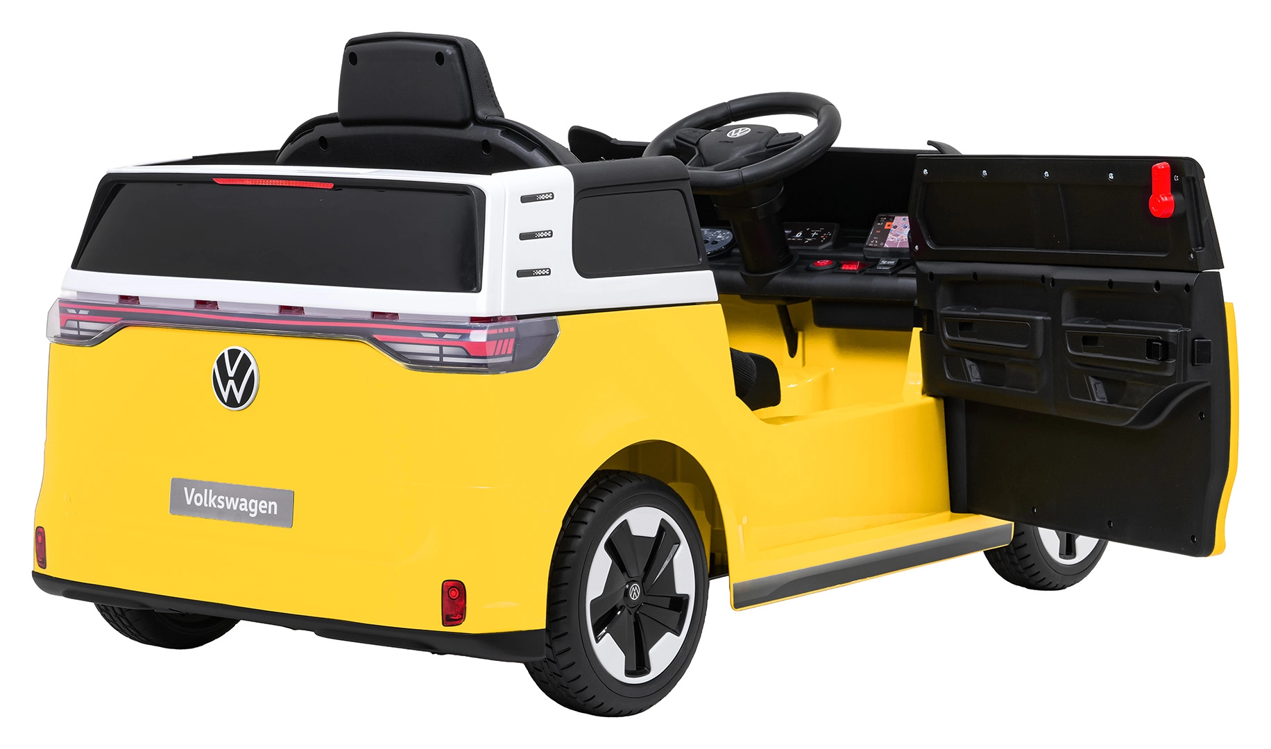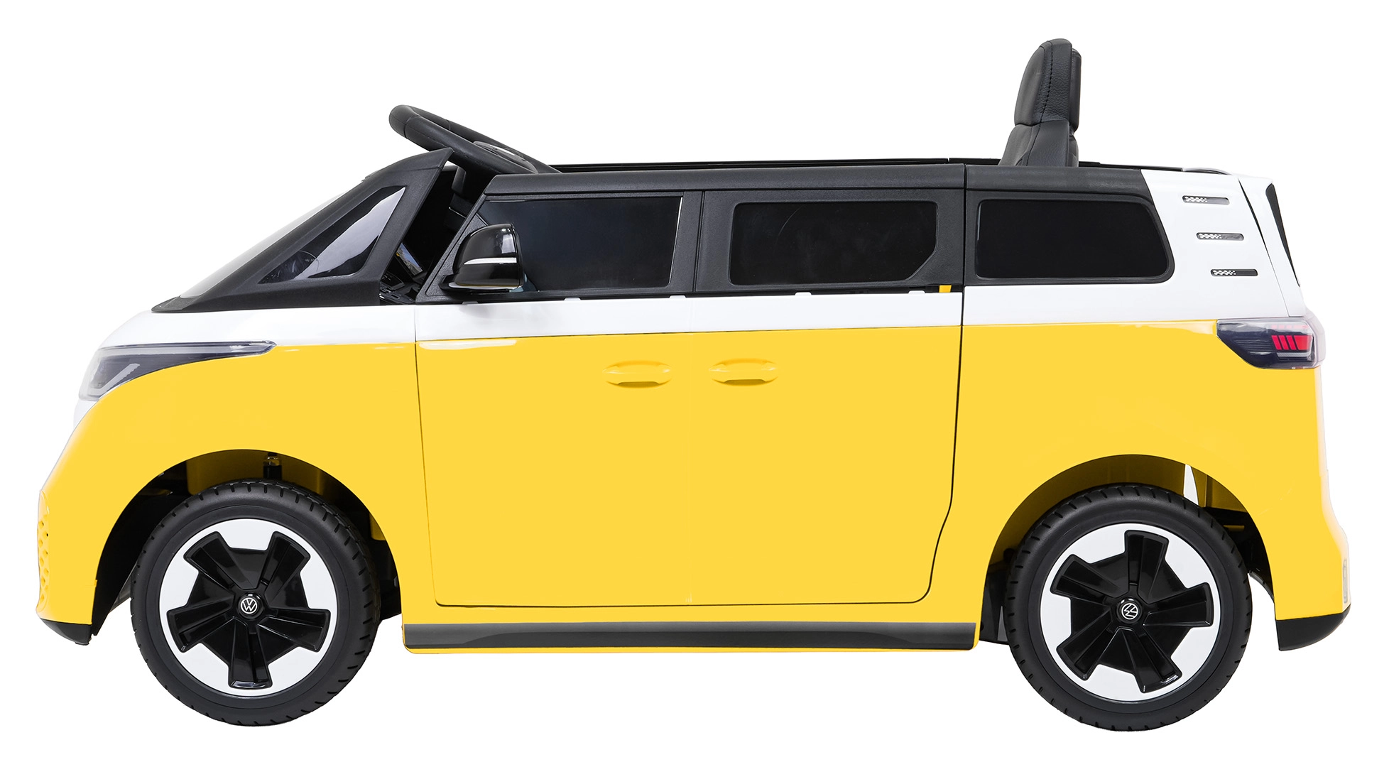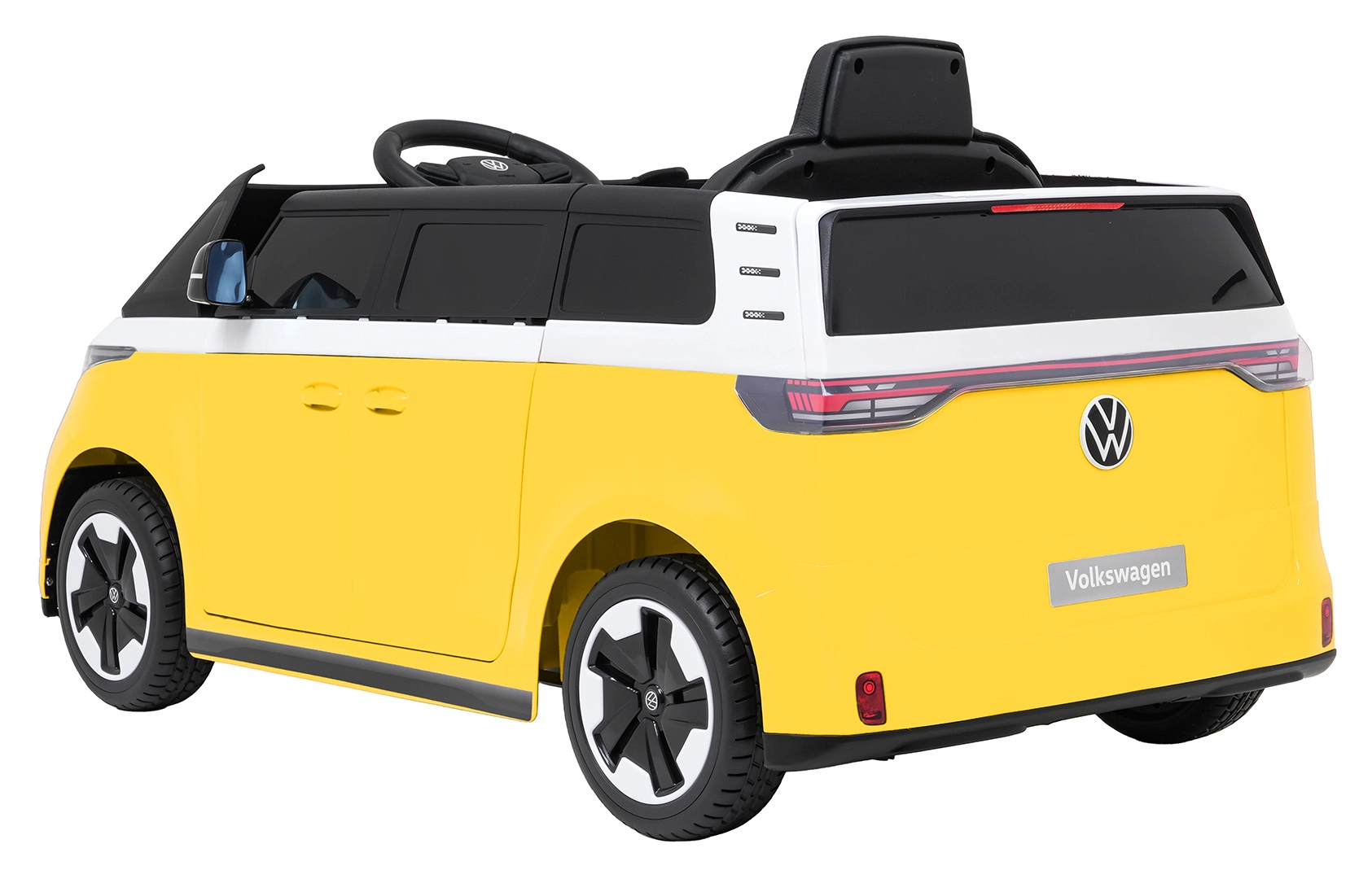 Malý řidič si zamiluje ikonický design VOLKSWAGEN ID. BUZZ a promyšlené detaily interiéru se steeringem, palubní deskou a realistickými ovladači. Díky dvojici motorů 2×45 W a baterii 12 V / 10 Ah zvládne autíčko plynulý rozjezd, dvě rychlosti a jízdu vpřed i vzad. Pěnová EVA kola tlumí nerovnosti, zatímco přední i zadní odpružení přidává komfort na každém povrchu.