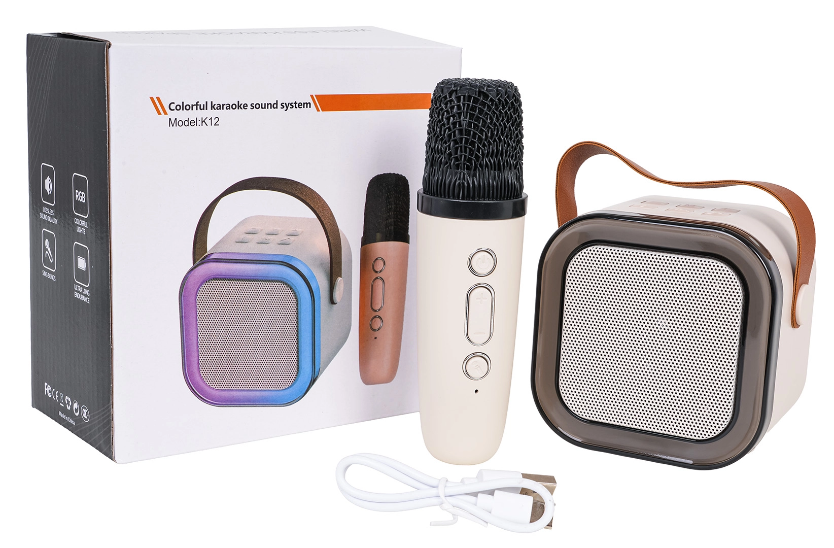 Kompaktní karaoke set pro děti od 3 let i dospělé spojuje bezdrátový mikrofon a výkonný mini reproduktor s čistým a hlasitým zvukem, RGB podsvícením a stabilním Bluetooth 5.0. Díky DSP redukci šumu, podpoře MP3/WMA/WAV a vstupům včetně TF karty a USB‑C je ideální na zpěv, oznámení i zábavu na cestách.