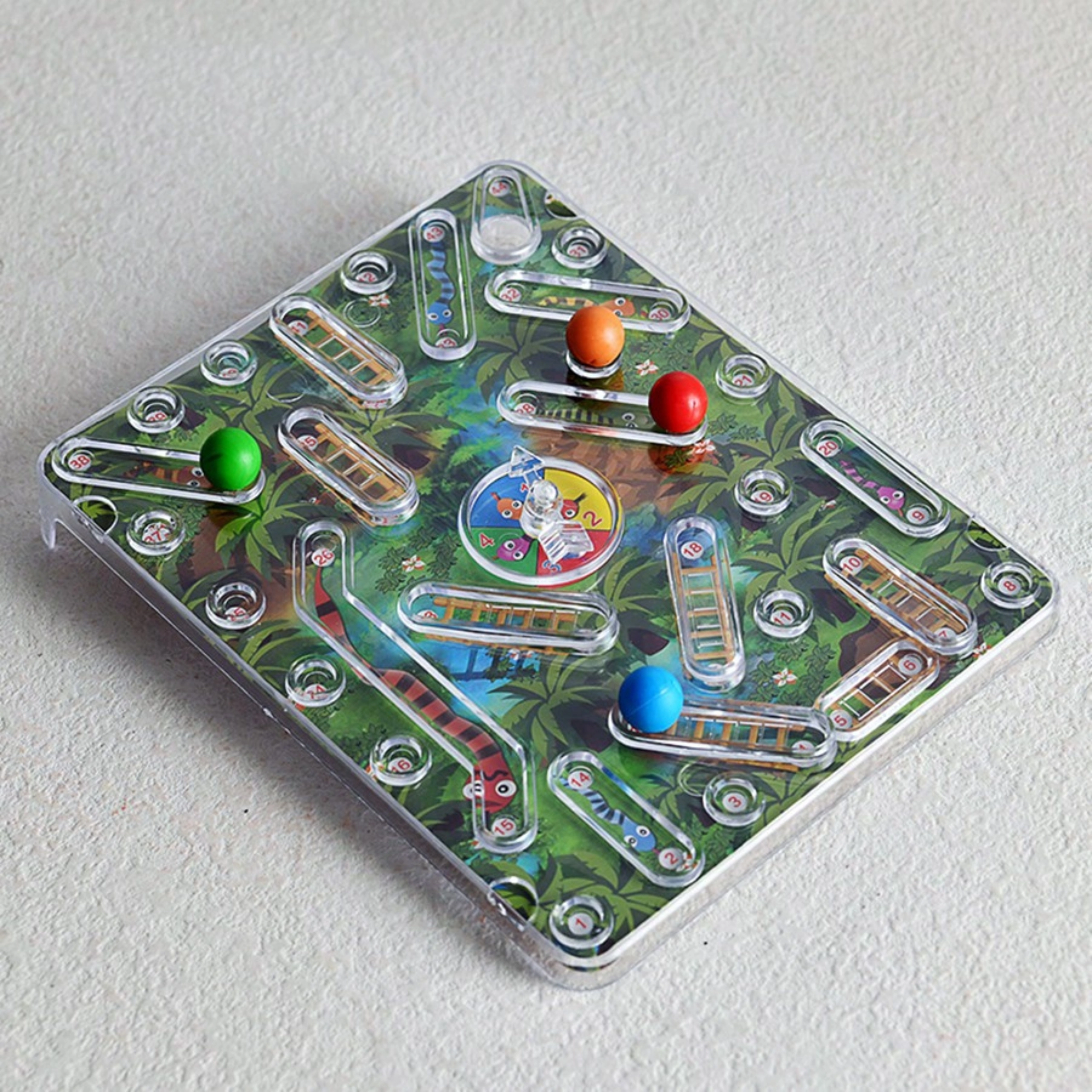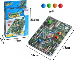 - herní plán, 4 barevné kuličky, vestavěný spinner