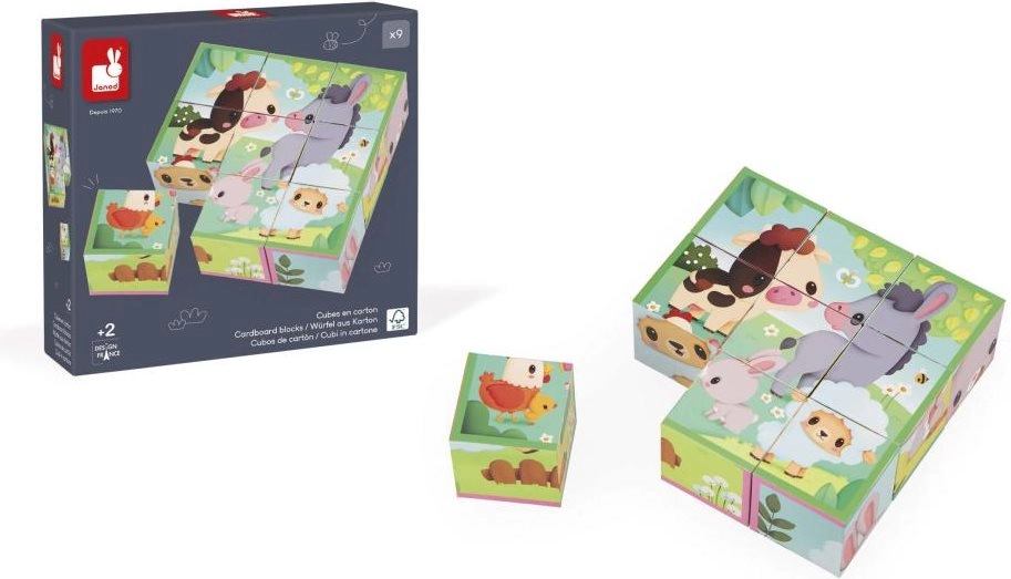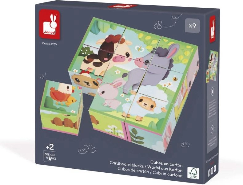 Objevte kouzlo skládání s dřevěnou sadou JANOD – 9 pevných kostek, ze kterých složíte až 6 roztomilých farmářských obrázků. Ideální pro nejmenší i předškoláky: rozvíjí jemnou motoriku, koordinaci oko–ruka, logické myšlení i fantazii a motivuje k vyprávění příběhů.