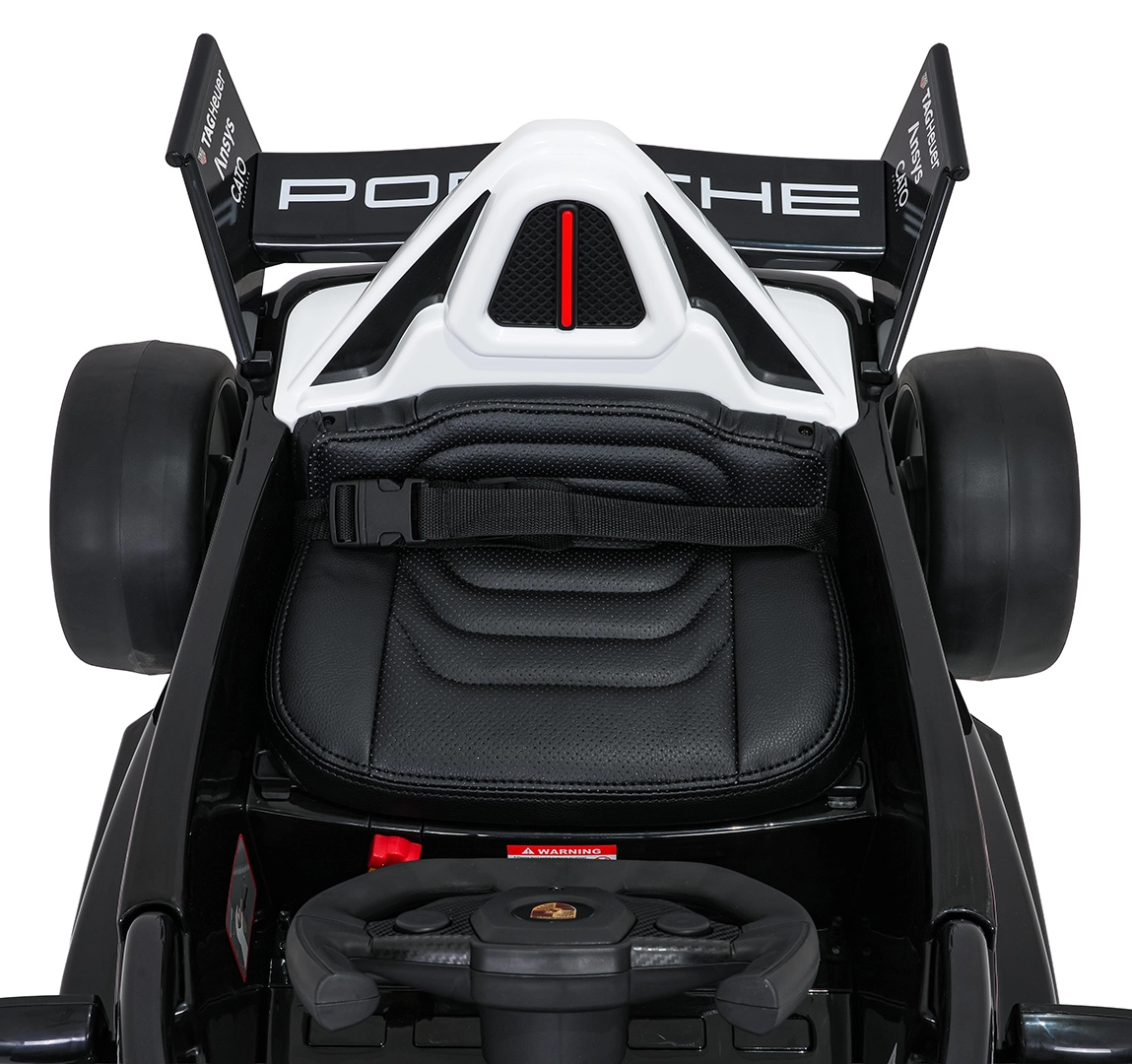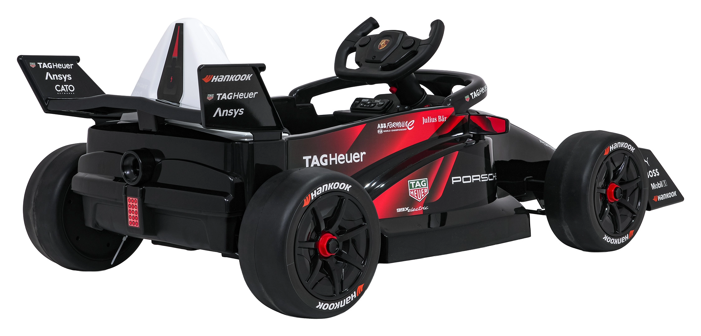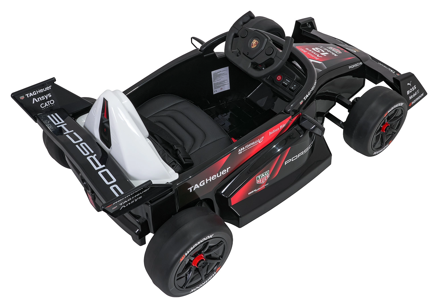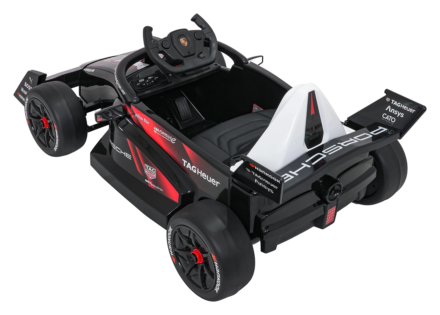 Usedněte do světa závodů s dětským elektrickým vozítkem inspirovaným monopostem PORSCHE Formula E. Silný pohon 2×35 W, baterie 12 V 7 Ah, měkká EVA kola a pohodlné sedadlo z ekokůže s bezpečnostními pásy zajistí hladkou a bezpečnou jízdu. Ovládání doplňuje dálkový ovladač 2,4 GHz se Stop funkcí, audio panel s Bluetooth/USB/MP3 a přehledný indikátor nabití.
