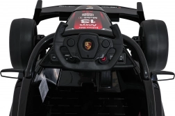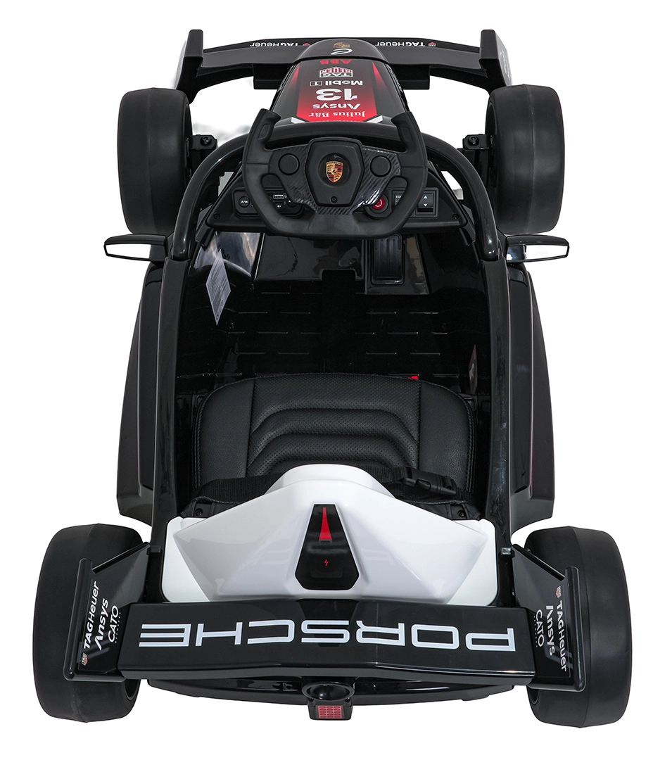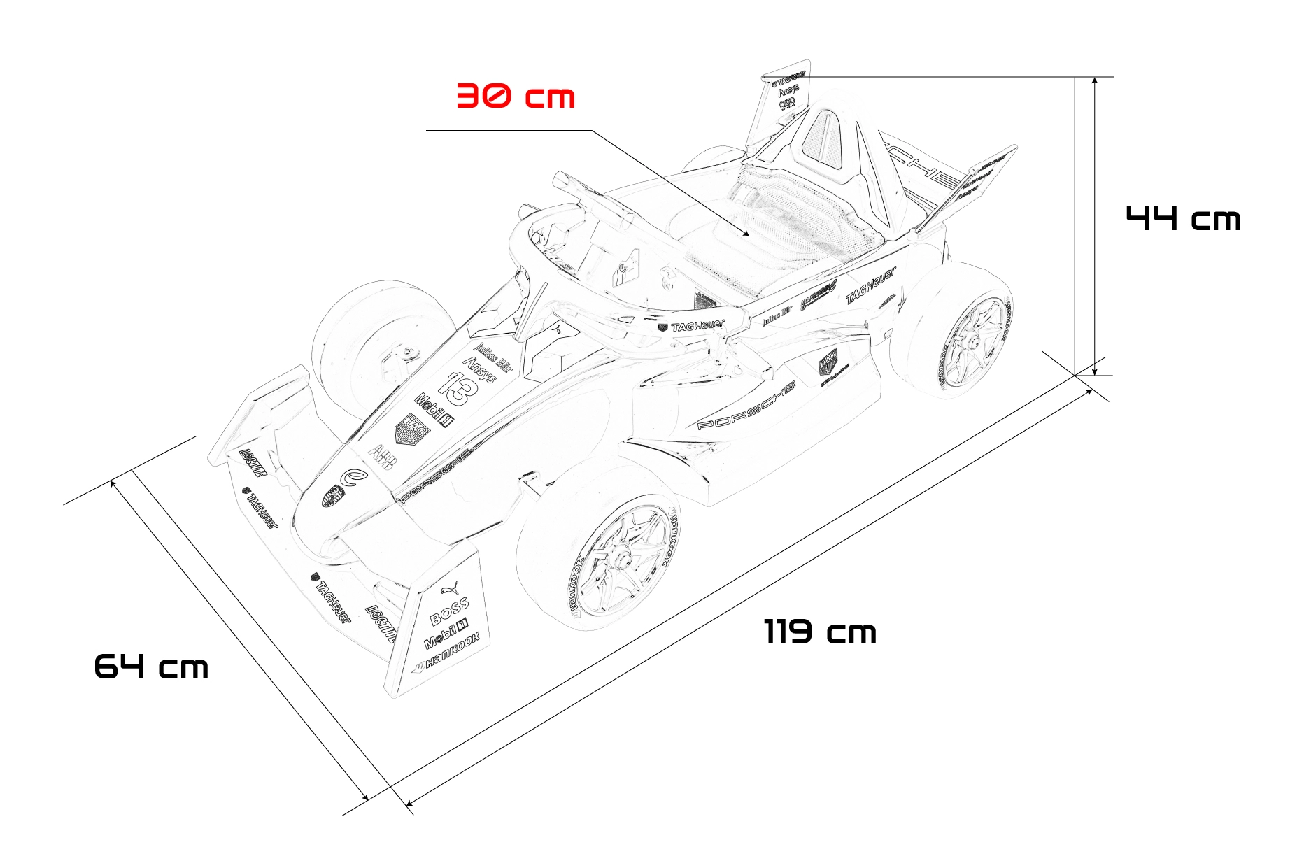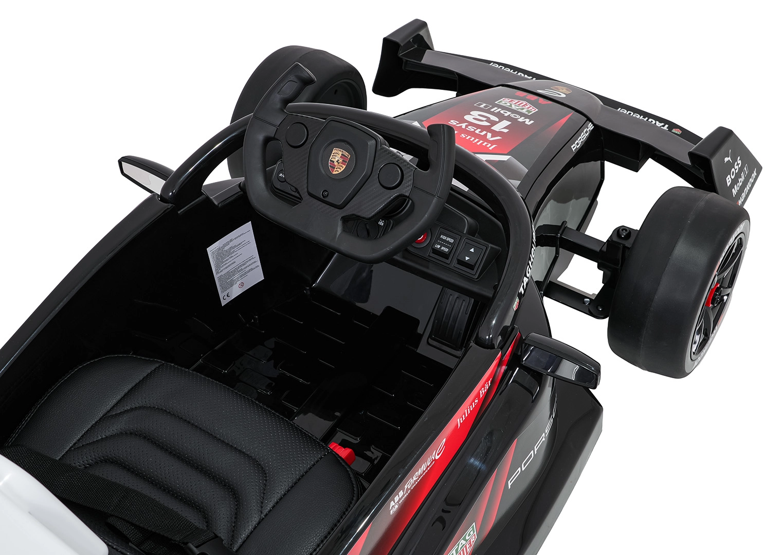Usedněte do světa závodů s dětským elektrickým vozítkem inspirovaným monopostem PORSCHE Formula E. Silný pohon 2×35 W, baterie 12 V 7 Ah, měkká EVA kola a pohodlné sedadlo z ekokůže s bezpečnostními pásy zajistí hladkou a bezpečnou jízdu. Ovládání doplňuje dálkový ovladač 2,4 GHz se Stop funkcí, audio panel s Bluetooth/USB/MP3 a přehledný indikátor nabití.