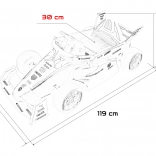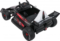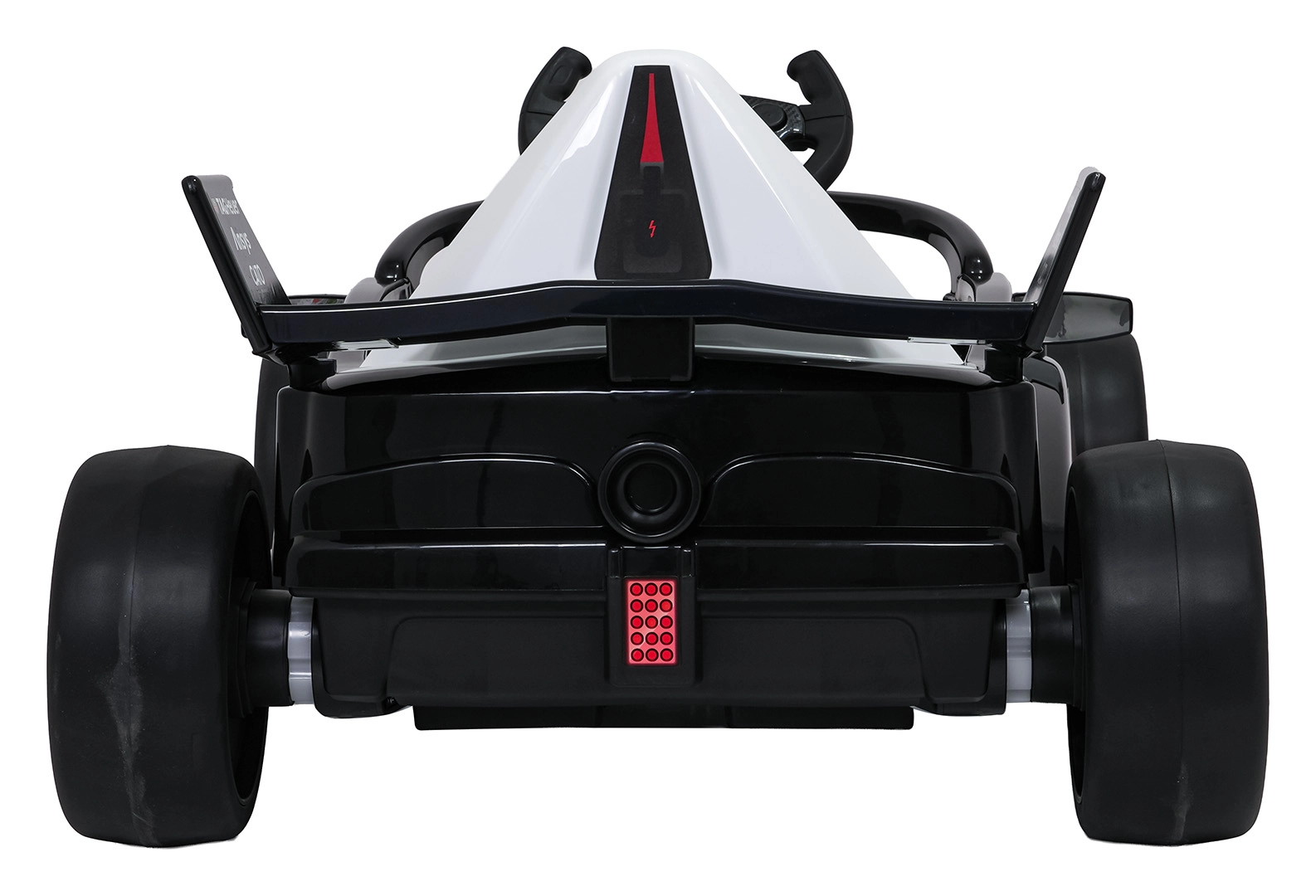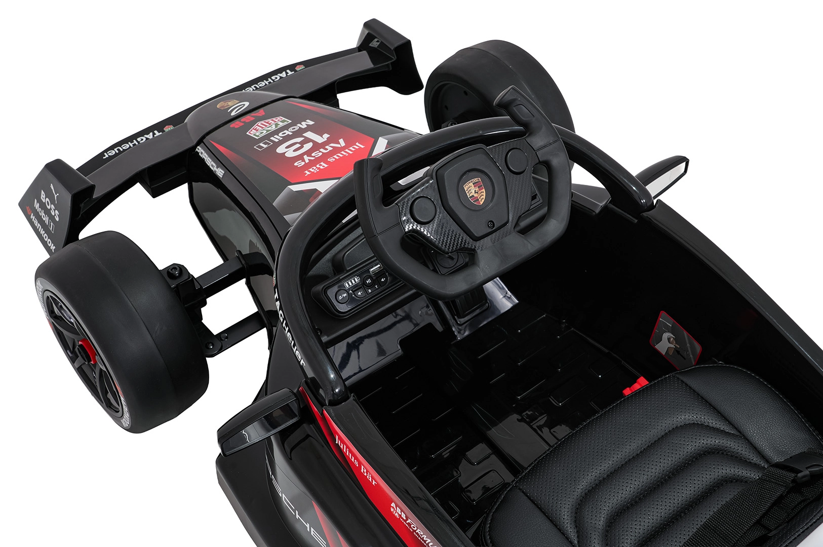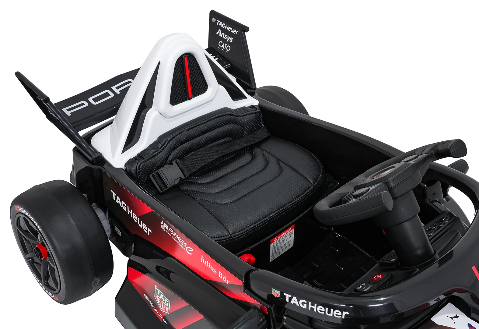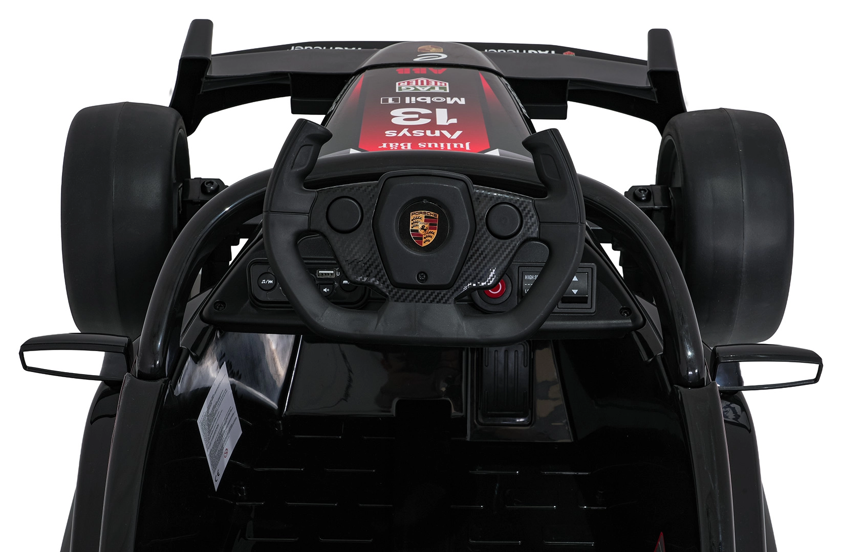 Usedněte do světa závodů s dětským elektrickým vozítkem inspirovaným monopostem PORSCHE Formula E. Silný pohon 2×35 W, baterie 12 V 7 Ah, měkká EVA kola a pohodlné sedadlo z ekokůže s bezpečnostními pásy zajistí hladkou a bezpečnou jízdu. Ovládání doplňuje dálkový ovladač 2,4 GHz se Stop funkcí, audio panel s Bluetooth/USB/MP3 a přehledný indikátor nabití.