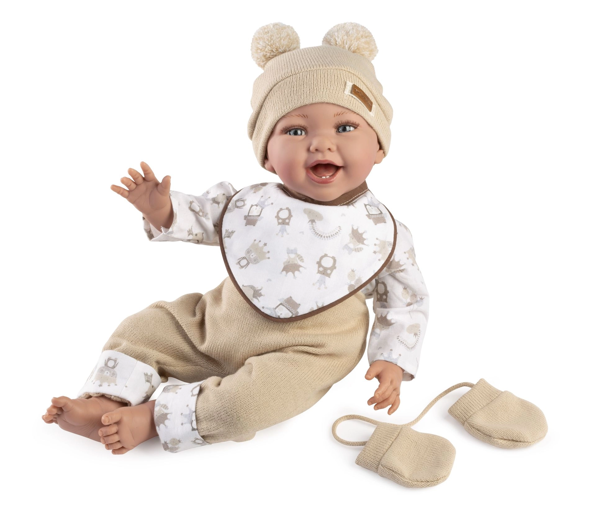 Panenka OLIVER je jako živá – jemný úsměv, realisticky tvarované ruce a nohy a hebké oblečky přímo vybízejí k mazlení a hře na rodiče. Díky kloubům, kterými jsou končetiny připevněny k tělu, je miminko snadno polohovatelné a může i sedět. Měkké látkové tělíčko je lehoučké a příjemné na dotek, takže se výborně drží i menším dětem.