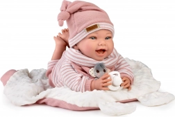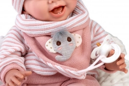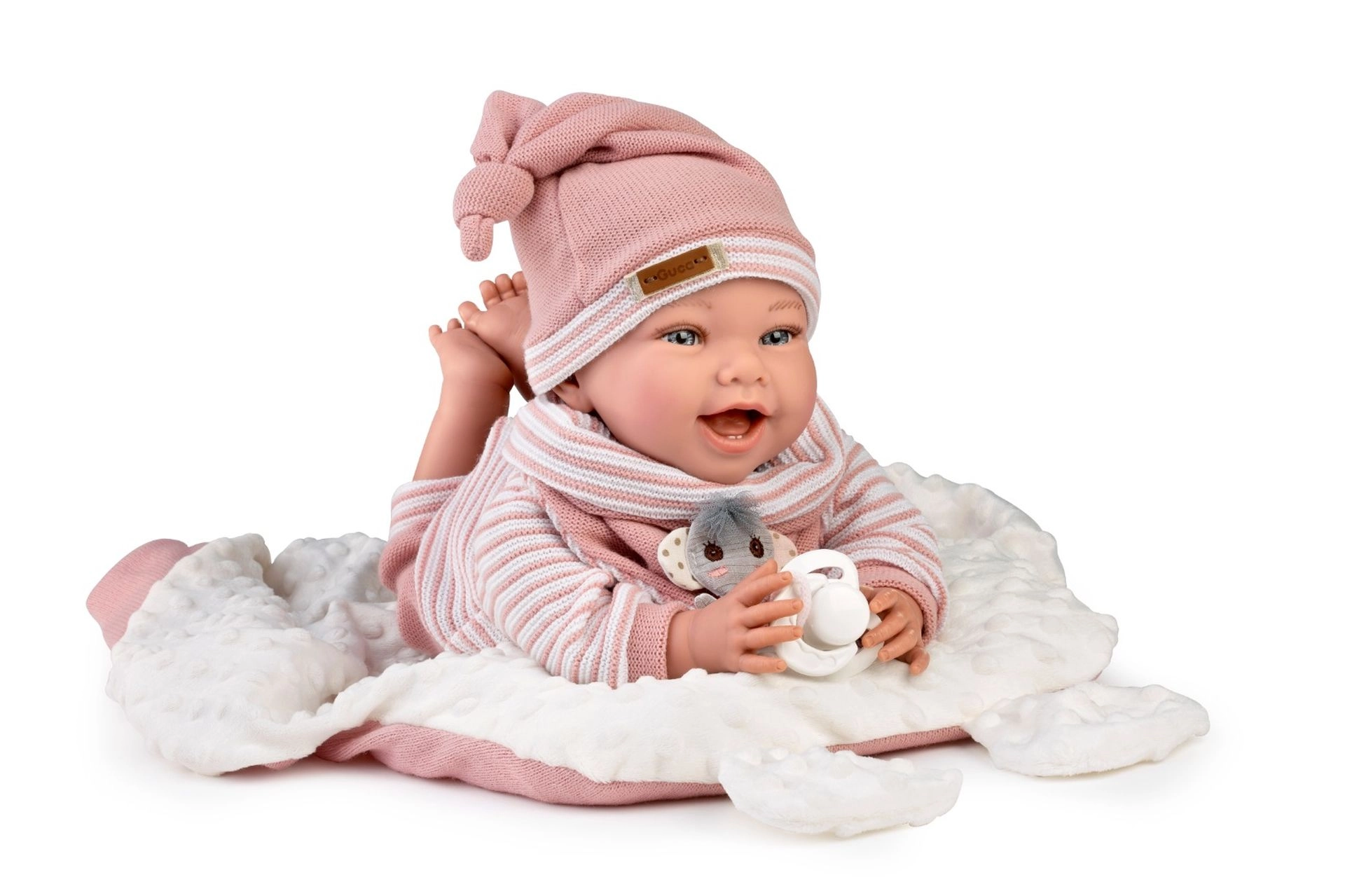 Zátěžová výplň v hlavičce a zadečku (cca 1 800 g) zajišťuje přirozené padání hlavičky a autentický pocit péče jako u skutečného miminka.