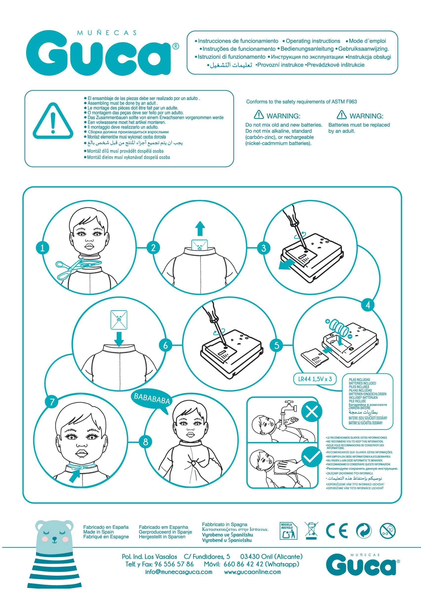 Panenka je ručně vyrobena ve Španělsku s důrazem na detail a kvalitu. Dodává se v dárkové krabici, takže je ideálním dárkem. Součástí balení jsou také 3 knoflíkové baterie LR44 a návod k jejich výměně.