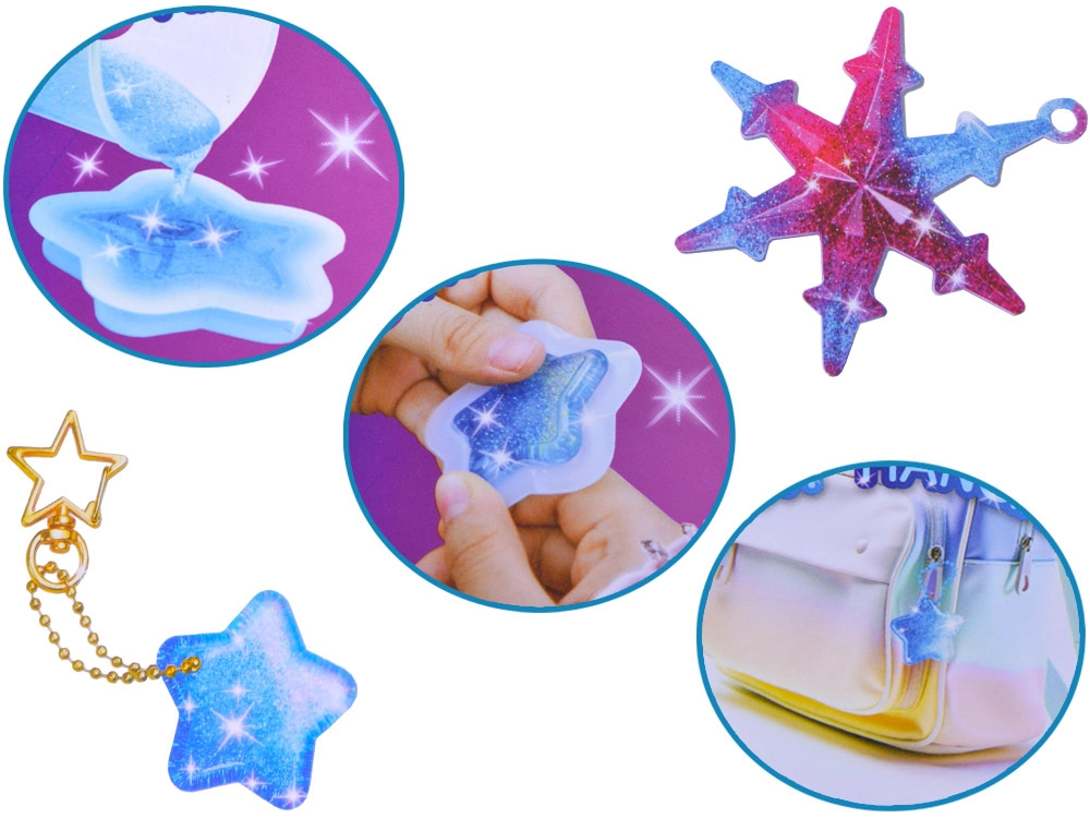 Tato kreativní sada vám umožní snadno odlévat křišťálově čisté ozdoby z pryskyřice v oblíbených tvarech – hvězda, mráček či srdce. Smíchejte složky A a B v poměru 1:1, přidejte třpytky nebo barevné konfety, nalijte do silikonových forem a po vytvrzení doplňte kovové kroužky, řetízky a korálky. Díky praktickému organizéru budete mít veškeré komponenty přehledně po ruce.