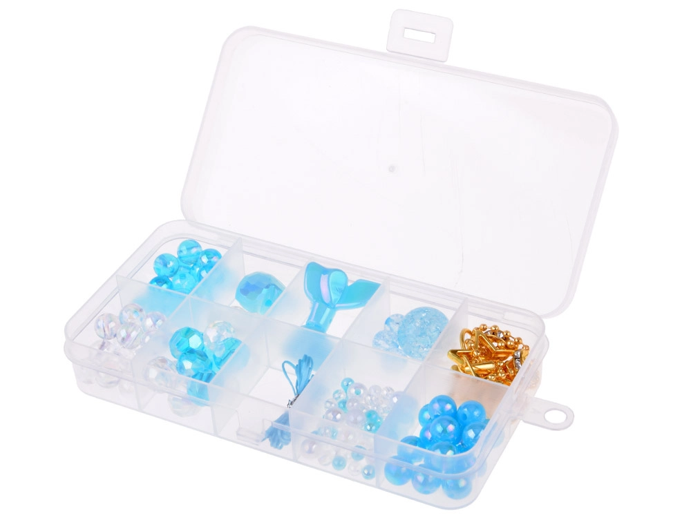 Barevné třpytky, flitry a korálky uložíte do průhledného boxu s přihrádkami – vše je uspořádané a vždy po ruce.