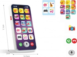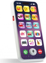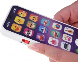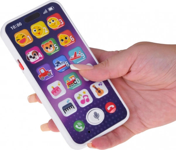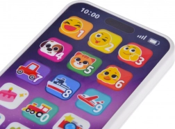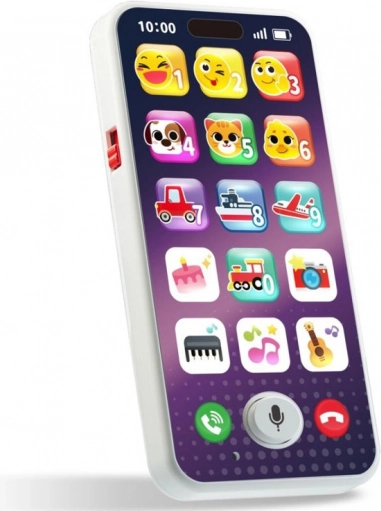 Barevný interaktivní telefon pro nejmenší napodobuje skutečný smartphone a nabízí spoustu zábavy i učení. Dítě se díky velkým ikonám učí čísla, zvířecí a dopravní zvuky a poslouchá melodie. Hračka je lehké a ploché provedení, snadno se drží v malých ručkách a má regulaci hlasitosti pro pohodlnou hru doma i na cestách.