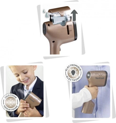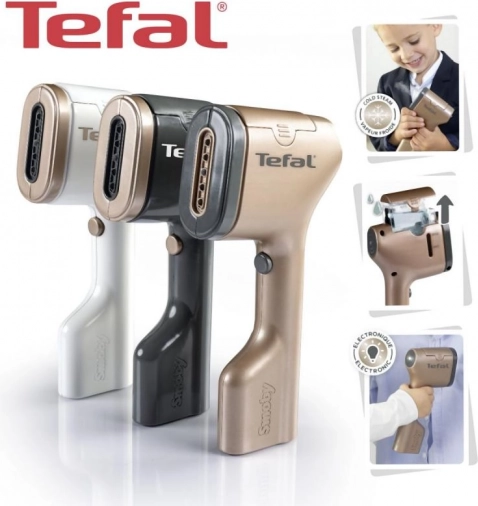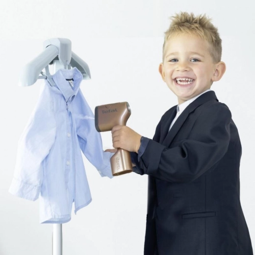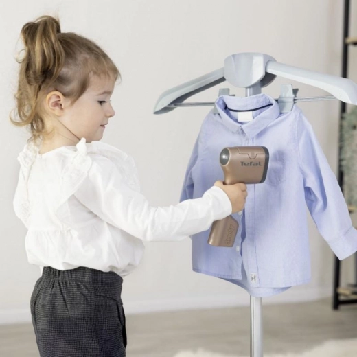 Dětský ruční napařovač oděvů od TEFAL přináší realistickou hru a rozvíjí jemnou motoriku i smysl pro pořádek. Díky jednoduchému ovládání tlačítkem a skutečné páře si děti mohou bezpečně zkusit „vyhlazovat“ záhyby na oblečcích pro panenky či dětských kostýmech.