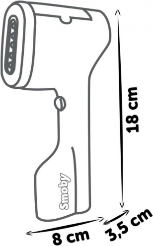 Kompaktní rozměry 3,5 × 8 × 18 cm a tvar pistole zajišťují pohodlné držení a snadné ovládání i pro menší děti.