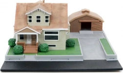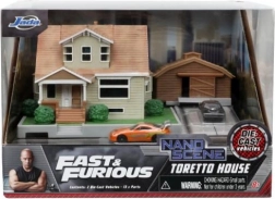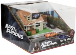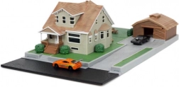 Věrné ztvárnění Toretto House s domem, garáží, příjezdovou cestou a zahradou na jednom podstavci – ideální pro vystavení.