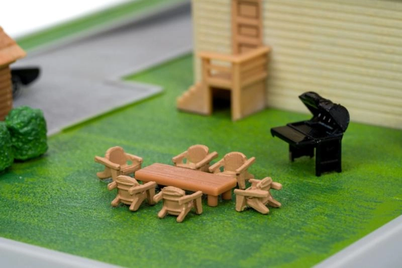Součástí jsou 2 kovová nano autíčka v měřítku pro dioramata – Dodge Charger a Toyota Supra – s volnoběžnými koly a gumovými pneumatikami pro hladký pohyb. Atmosféru dotváří zahradní gril a nábytek pro realistické scénky a fotky.