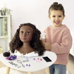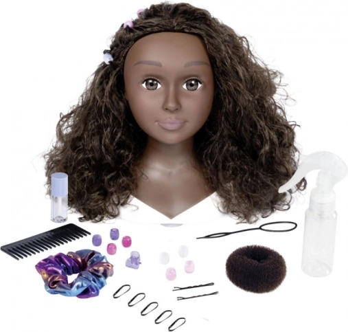 Tato česací hlava Afro je skvělým parťákem pro trénink copánků, drdolů a moderních účesů. Realistické, bohaté kadeře umožňují česat, splétat i zdobit a díky přiloženým doplňkům zvládneš účesy pro každou příležitost. Navíc má zábavnou magickou funkci rtů – přiložený štěteček namoč do studené vody a sleduj, jak se rty krásně vybarví.