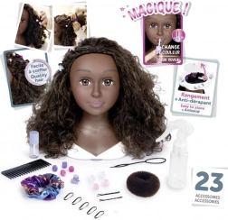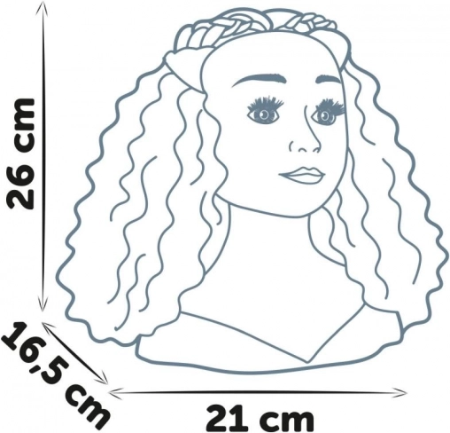 Stabilní podstavec s přísavkami drží hlavu pevně na stole, takže se vlasy lépe upravují. Všech 23 kusů příslušenství snadno uložíš do tajné skrýše v podstavci, aby bylo vše vždy po ruce a bez nepořádku. Výška hlavy 26 cm je ideální pro dětské ruce i první kadeřnické pokusy.