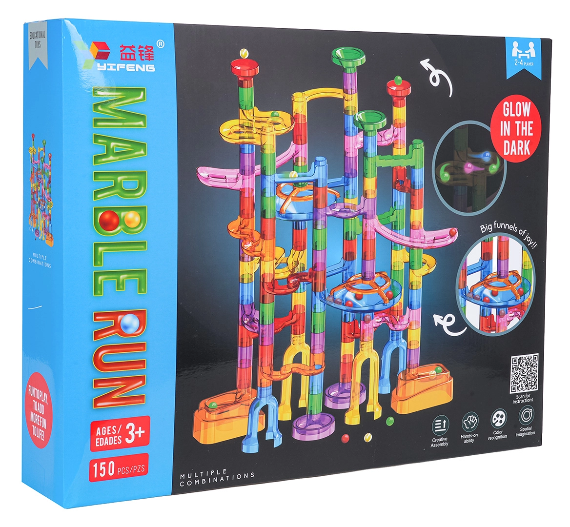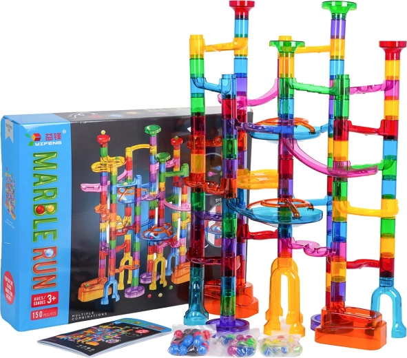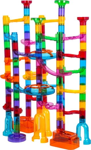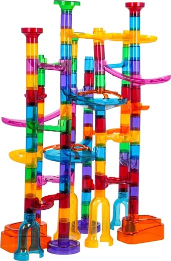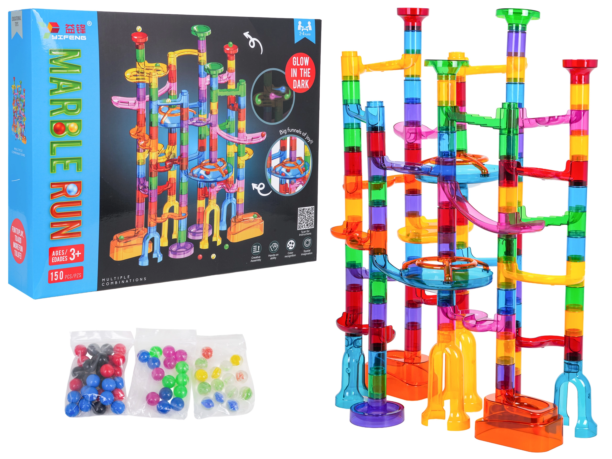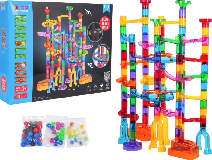 Postavte si vlastní kuličkovou dráhu a sledujte, jak kuličky sviští dolů křivolakými tunely. Tento barevný set s až 150 díly a kuličkami svítícími ve tmě nabízí hodiny kreativní zábavy pro děti od 3 let, rozvíjí jemnou motoriku, koordinaci oko–ruka a představivost.