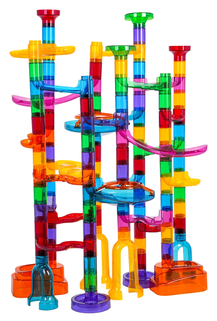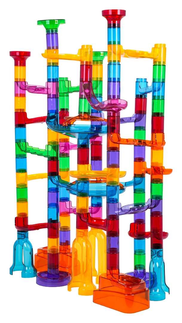 Odolné, průhledné komponenty v jasných barvách zajišťují pevnost celé dráhy a skvělý vizuální efekt při jízdě kuliček.