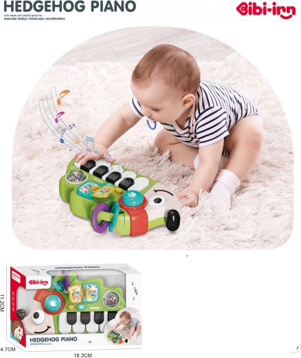 Seznamte své dítě se světem hudby díky roztomilému pianinku ve tvaru ježka. Hračka zaujme živými barvami a bezpečným provedením, podporuje rozvoj sluchu, koordinace oko–ruka i zvídavosti. Nad klávesami je umístěn přepínač režimů a tlačítko pro spuštění melodií, výše pak otočná knížečka, bubínek, chrastítko s barevnými kuličkami a praktické kousátko.