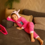 Roztomilá kapuce s ušima a tváří postavičky dodá overalu hravý vzhled a děti si ji zamilují.