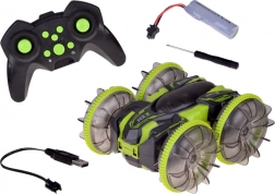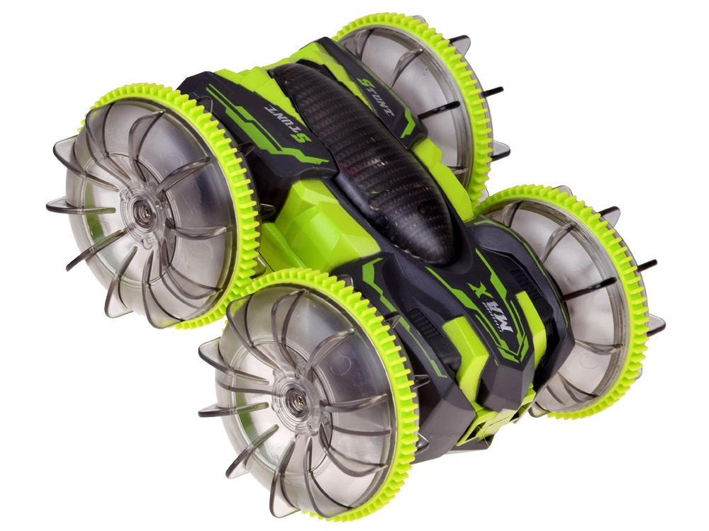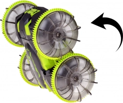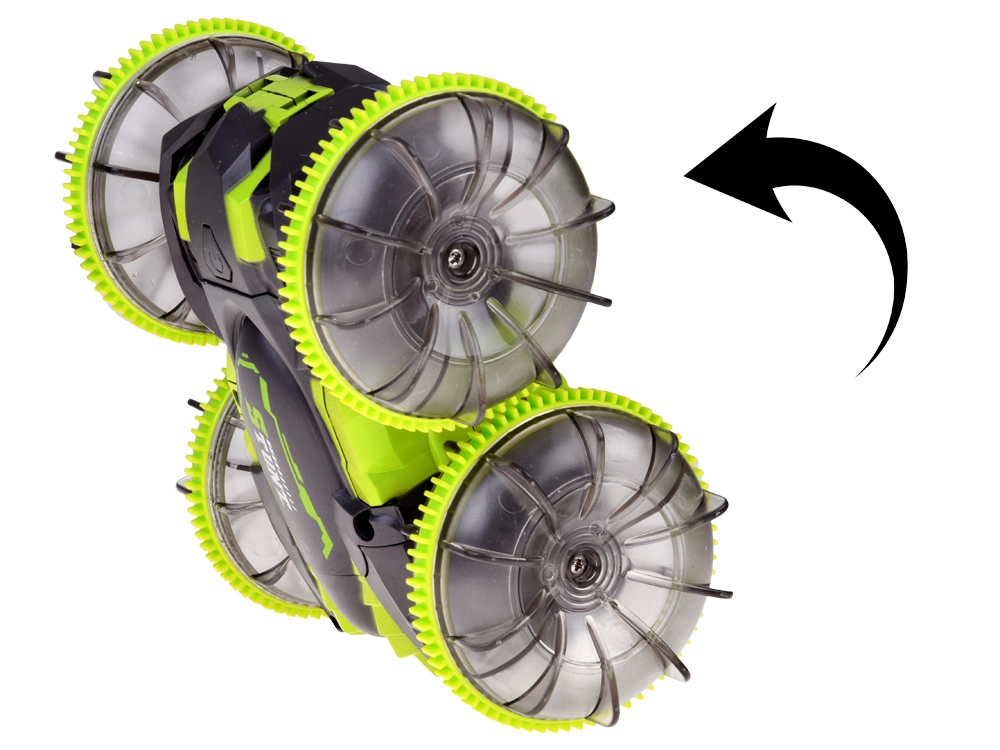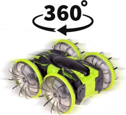 Objevte adrenalin s amfibiálním kaskadérským RC autem, které si poradí s trávou, kobercem, dlažbou i vodní hladinou. Velká transparentní kola s výrazným vzorkem a LED podsvícením zajišťují výbornou přilnavost a efektní vzhled při jízdě i po setmění. Díky otočce 360° pokračuje v jízdě i po převrácení.