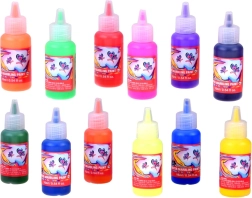 Malé lahvičky s jemnou tryskou umožňují precizně kapat barvu na hladinu a vytvářet detailní efekty.