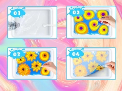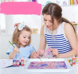 Sada na malování na vodě Ebru vám umožní přenášet barevné vzory z hladiny zahuštěné vody přímo na papír. Díky praktickému příslušenství a jasnému postupu je tvoření intuitivní a zábavné – skvělé pro rodinné odpoledne, školní projekty i relax po práci.