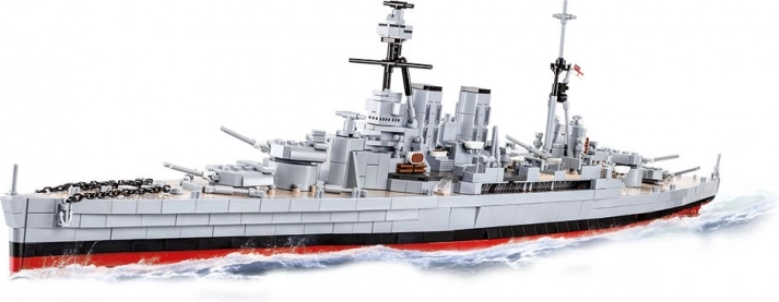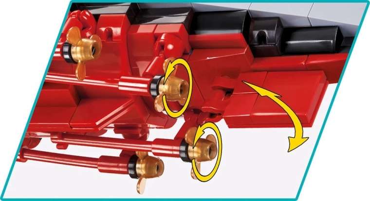 Otočné dělostřelecké věže, nastavitelná děla a bohatě vybavená paluba s čluny, stožáry a řetězy přinášejí realistický vzhled i zábavnou manipulaci po dokončení stavby.
