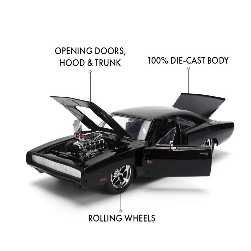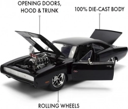 Ikonický sběratelský model 1970 DODGE CHARGER z filmu Rychle a zběsile v měřítku 1:24 potěší fanoušky muscle carů i filmové série. Nabízí kovové zpracování, otevírací dveře, kapotu i kufr a realistické detaily včetně výrazného kompresoru na kapotě. Délka modelu je přibližně 21 cm.