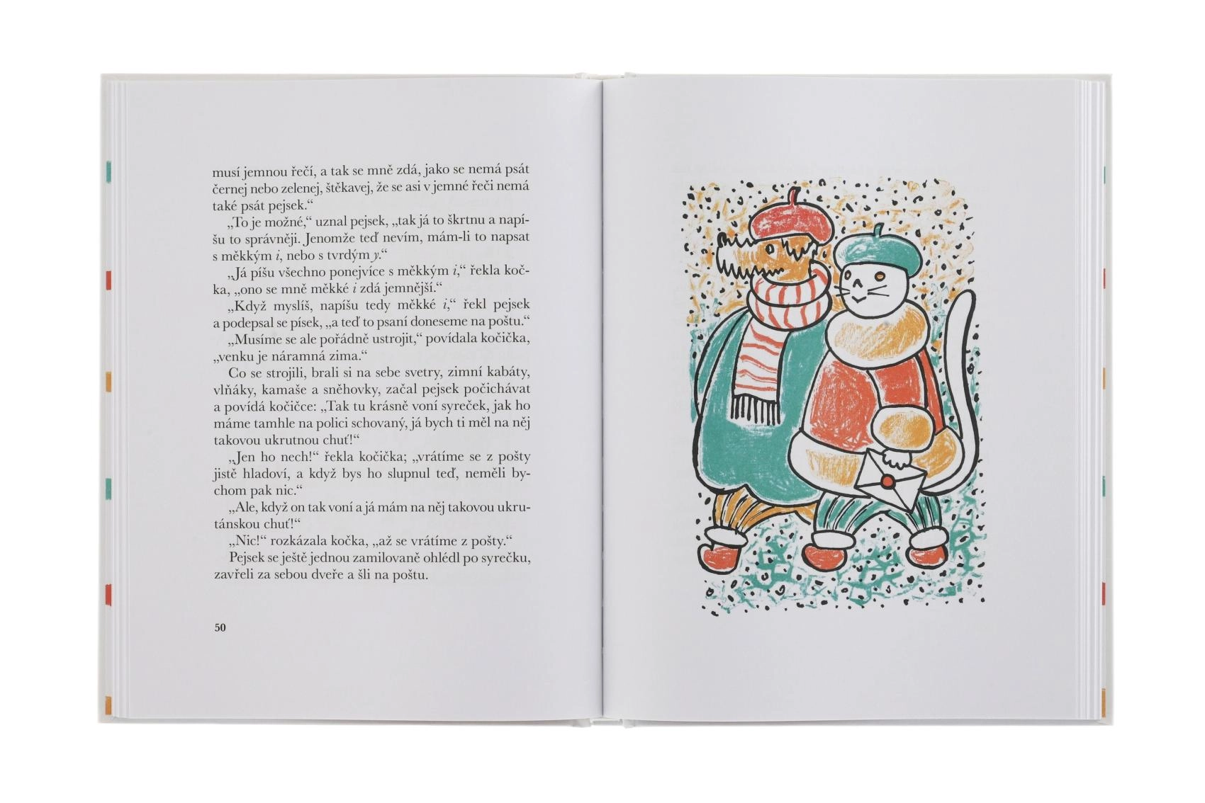 Oblíbená klasika české literatury pro děti – Povídání o pejskovi a kočičce – přináší krátké příběhy dvou nerozlučných kamarádů, kteří spolu žijí a hospodaří jako lidé. Myjí podlahu, pečou dort, slaví Vánoce i 28. říjen, vydávají se na výlety a navštěvují přátele. Text je proložen poetickými pohádkami a provází ho laskavý humor a krásný, srozumitelný jazyk.
