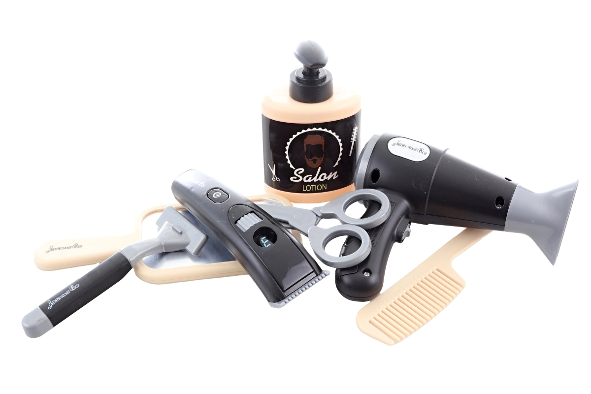 Dopřejte dětem realistický zážitek z kadeřnického salonu. Tato kadeřnická sada obsahuje praktický látkový opasek pro přehledné uložení nástrojů, bohaté příslušenství a fén na baterie, který po zapnutí svítí a vydává zvuk, čímž umocňuje pocit skutečné práce v salonu.