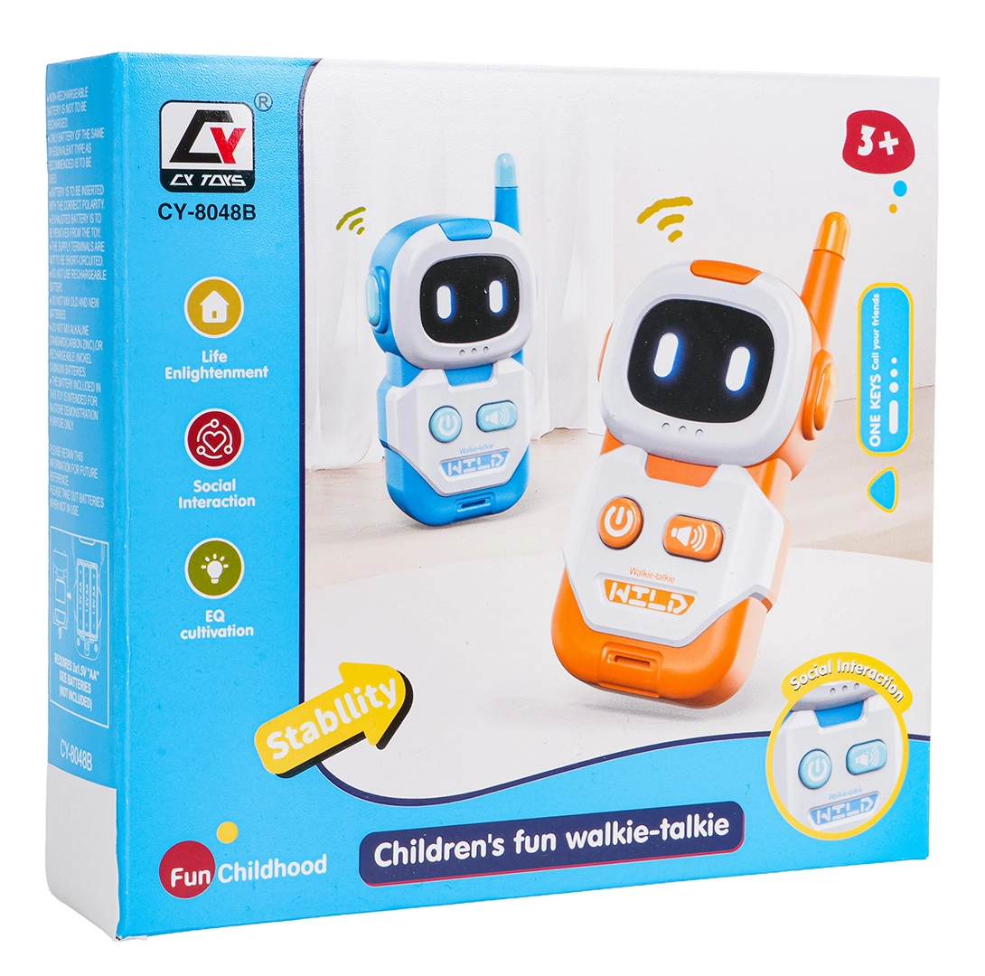Zábavná sada dvou dětských vysílaček ve stylu robota pro malé průzkumníky od 3 let. Jsou lehké a kompaktní, skvěle padnou do malých rukou a nabídnou velký dosah pro hry venku i doma. V balení nechybí šňůrky na zápěstí pro bezpečné nošení. Napájení zajišťují baterie 3× AA (na jednu vysílačku), které nejsou součástí balení.