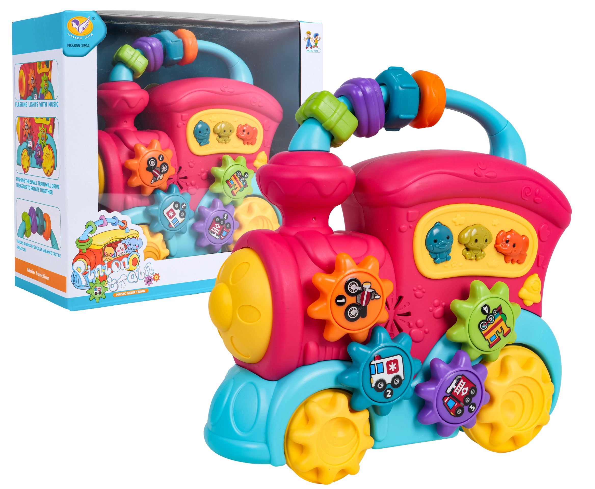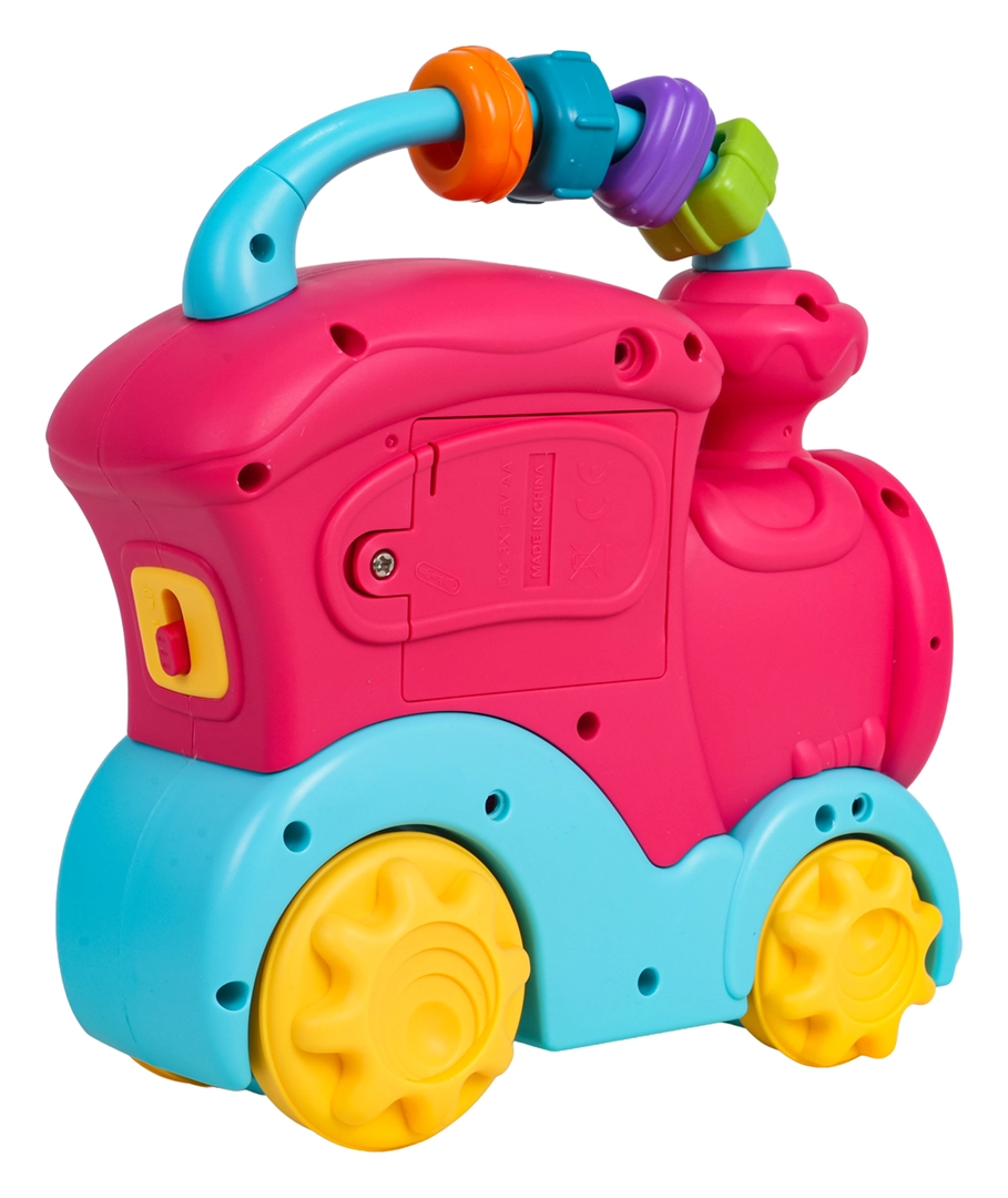 Hračka je navržena pro bezpečnou hru od 12 měsíců, má dvoudílnou regulaci hlasitosti a díky živým barvám podporuje vizuální vnímání. Ergonomická rukojeť usnadňuje přenášení i tlačení po podlaze. Vláček napájí 3× AA 1,5 V (nejsou součástí balení).