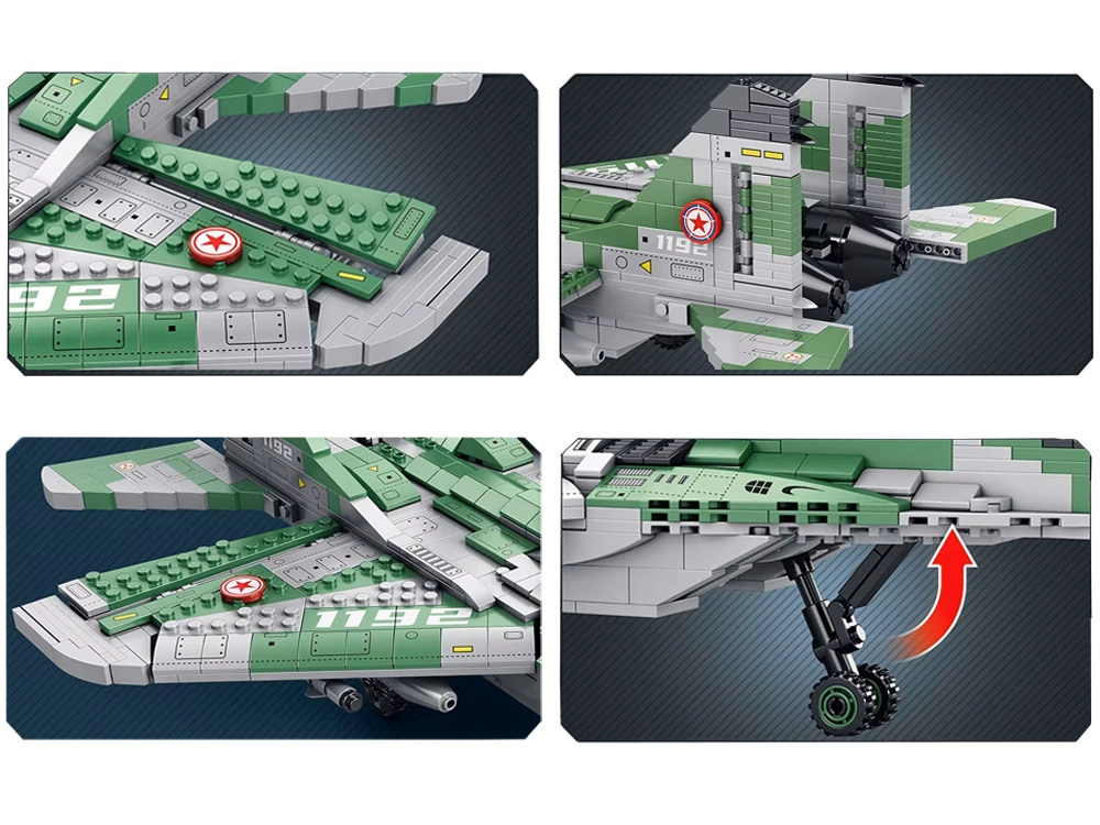 Nechybí vysouvací a zasouvací podvozek, průhledný kryt kabiny a možnost osadit různé typy střel pro dynamickou hru a inscenování misí. Stavebnice rozvíjí manuální dovednosti, trpělivost a kreativitu, zároveň přibližuje základy aerodynamiky a leteckého inženýrství.