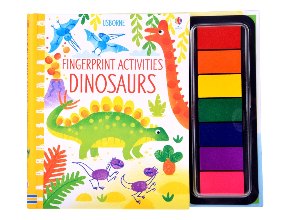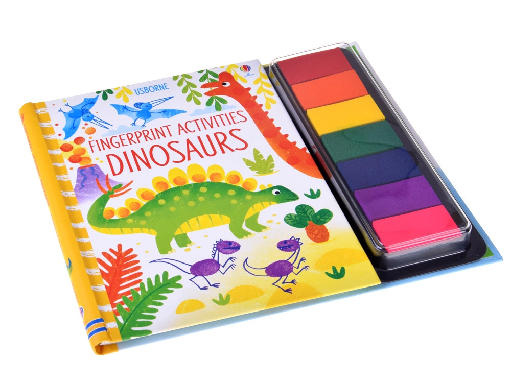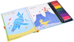 Knížka pro malování prsty dinosauři je ideální volba pro děti od 3 let. Na každé stránce čeká jiné pravěké stvoření a jednoduchý úkol, který dítě plní pomocí otisků prstů. Integrovaná paletka 7 barev umožní tvořit bez dalších pomůcek – stačí otevřít a začít tvořit.