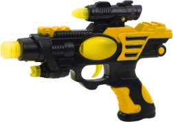 Stylová kosmická pistole pro malé dobrodruhy přináší světelné a zvukové efekty po stisku spouště. Lehká, ergonomická konstrukce se skvěle drží v dětské ruce, černo‑žlutý design působí futuristicky a láká ke kreativní hře doma i venku.