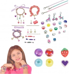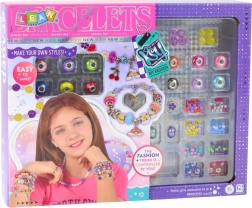 Tato univerzální sada pro DIY bižuterii umožní vytvářet jedinečné náramky podle nálady a příležitosti. Barevná srdíčka, ovoce, květiny i lesklé korálky dodají každému šperku výjimečný charakter. Díky elastickému šňůrku a kovovému základnímu náramku zvládnou tvorbu i začátečníci.