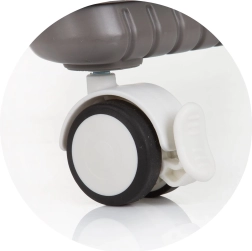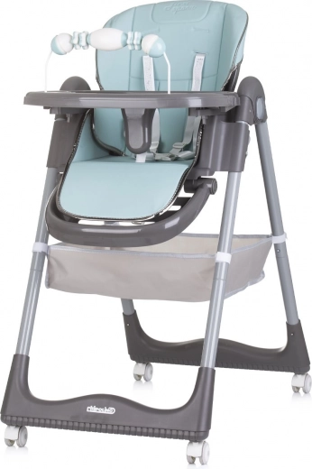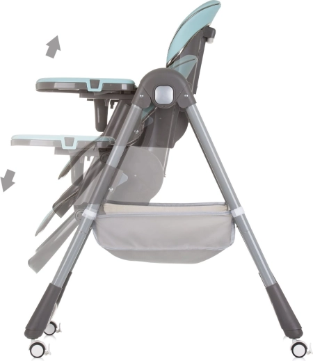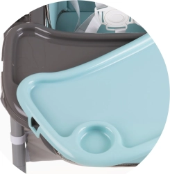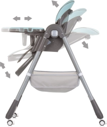 Dvojitý podnos s horní odnímatelnou částí usnadňuje údržbu a posuv v 4 polohách se přizpůsobí každé situaci. Hrazdička s hračkami zabaví miminko, zatímco vy tak můžete v klidu prostřít. Čtyři kolečka usnadní přesun po bytě a úložný koš udrží všechny potřebné drobnosti po ruce. Po jídle židličku rychle a kompaktně složíte pro úsporu místa.