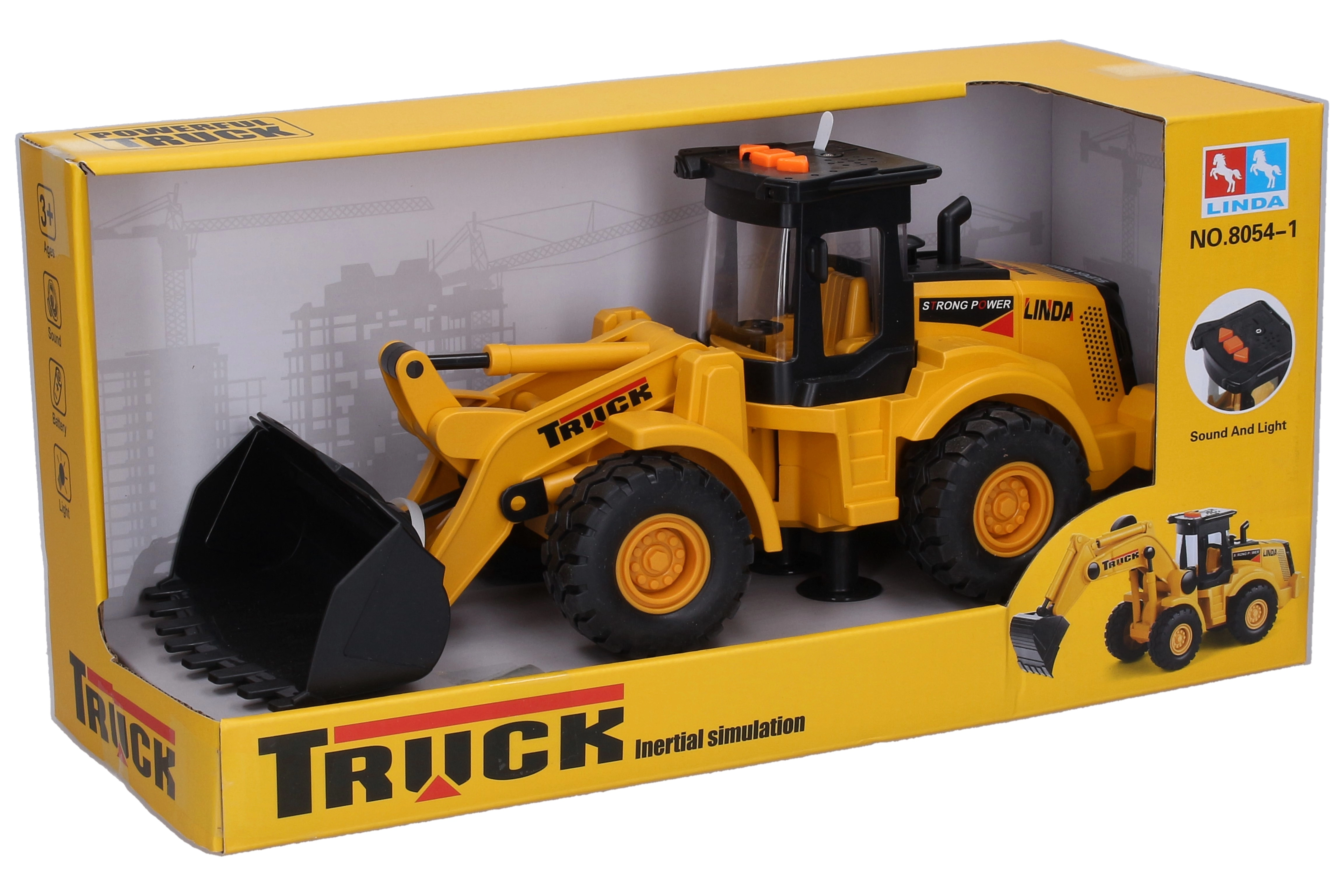 Užijte si zábavu se stavebním strojem, který vypadá i zní jako skutečný. Nakladač na setrvačník je ideální pro hraní doma i venku, nabízí plynulý pohyb vpřed díky setrvačníkovému pohonu a ovladatelnou pohyblivou radlici pro nakládání a vykládání.