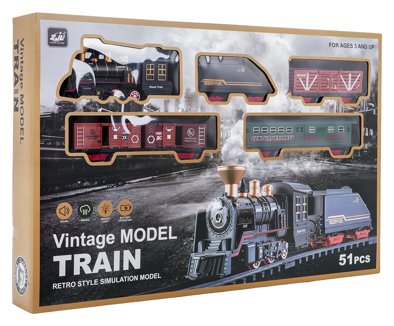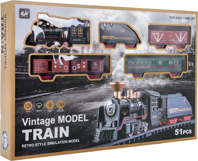 Tento detailně zpracovaný vláček ve vintage stylu přináší dětem autentický zážitek z jízdy. Po doplnění vody pomocí přiložené pipetky lokomotiva při jízdě jemně kouří komínem, svítí přední světlo a ozývají se věrné zvukové efekty. Díky robustním, bezpečným a modulárním kolejím děti snadno sestaví trať a rozjedou soupravu vpřed.