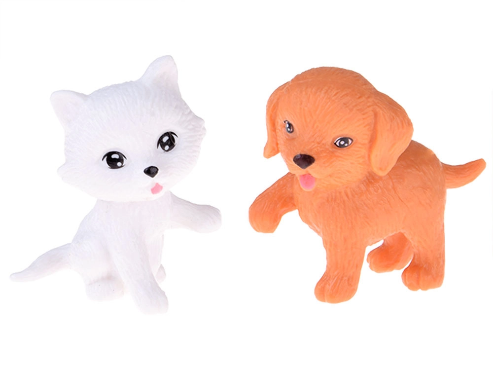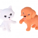 Bílá kočička a hnědý pejsek s vlastními miskami, pamlsky a kostí dodají každé scénce kouzlo a učí děti péči a sdílení.